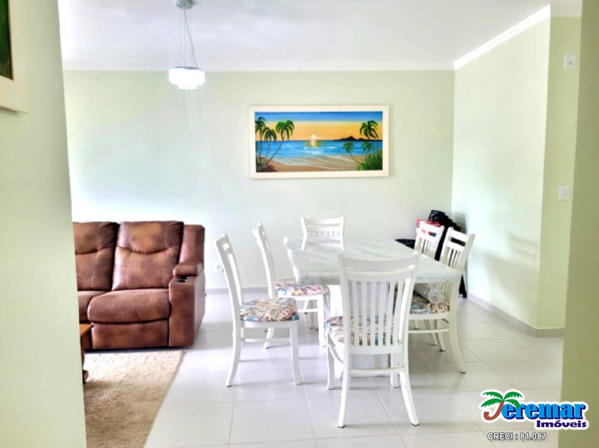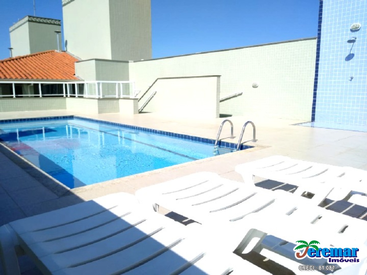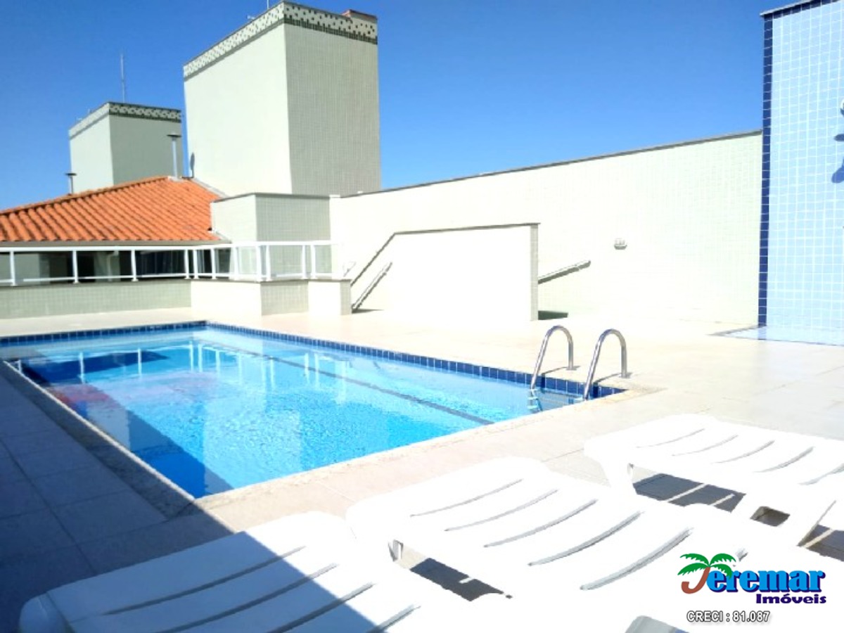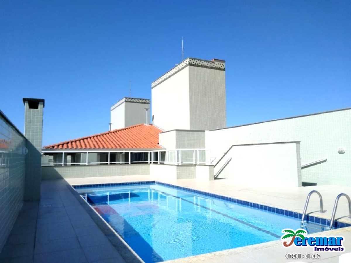 Cobertura a 200 metros da praia com ar condicionado são 03 dormitórios , 03 banheiros , sala , cozinha, churrasqueira e no prédio piscina.