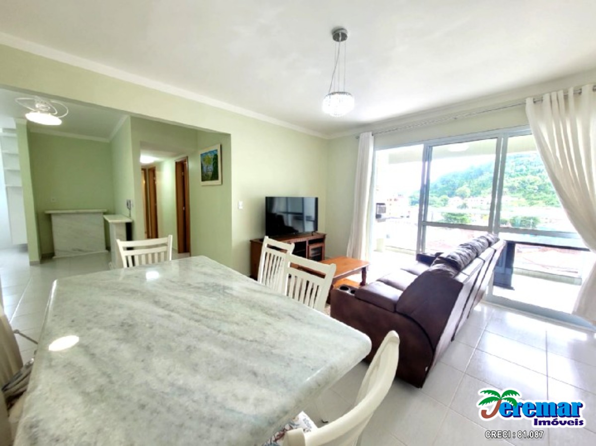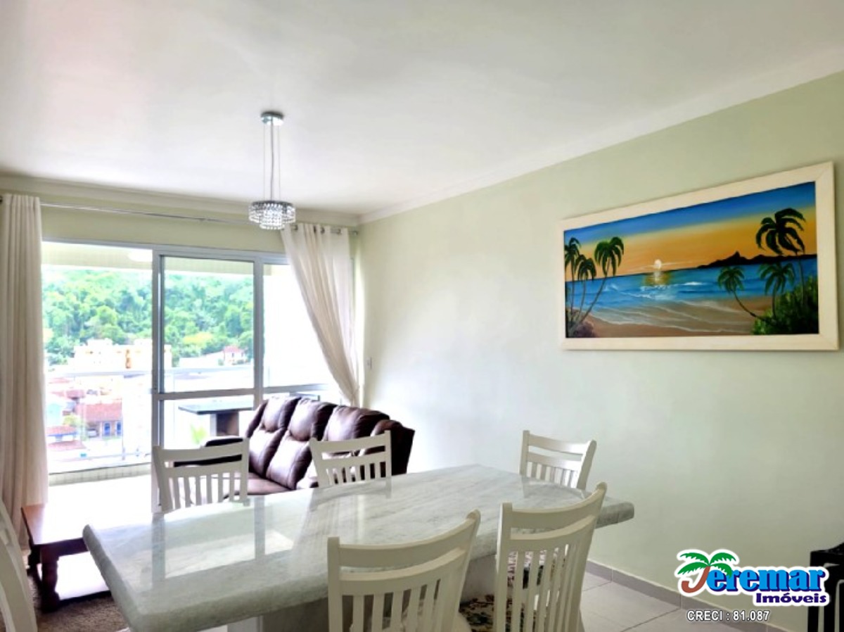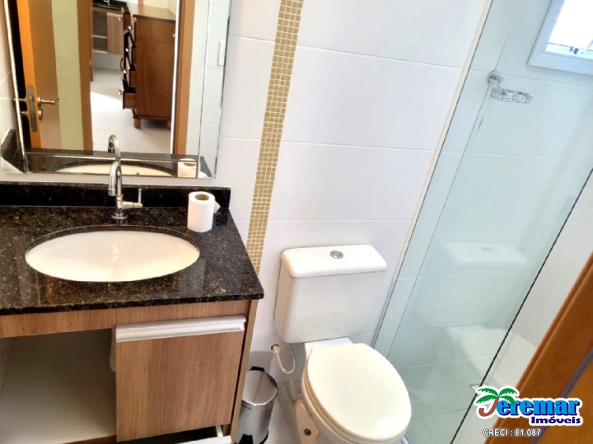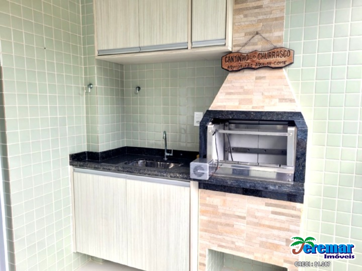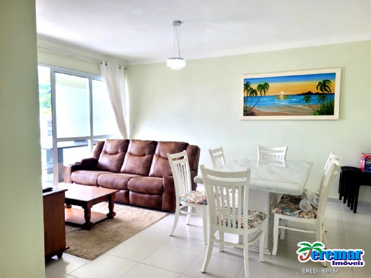 Cobertura a 200 metros da praia com ar condicionado são 03 dormitórios , 03 banheiros , sala , cozinha, churrasqueira e no prédio piscina.