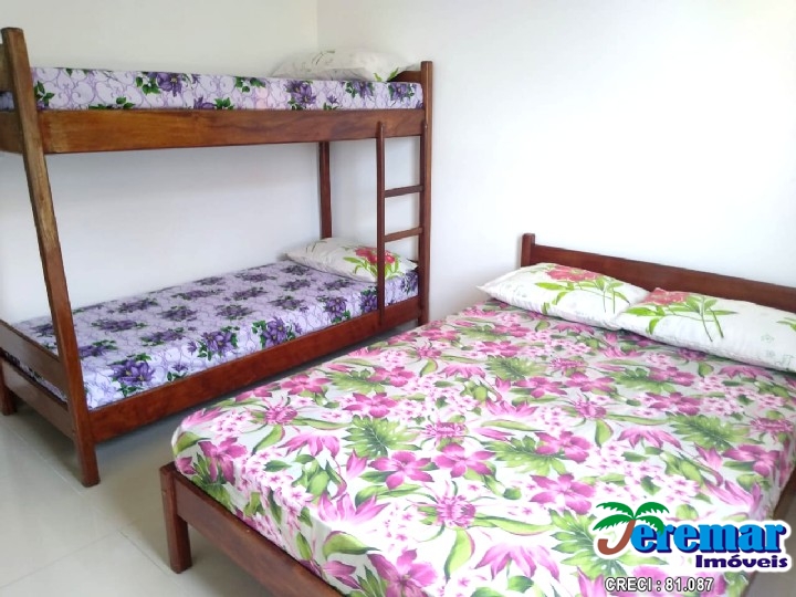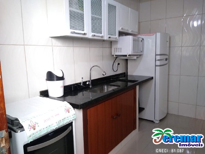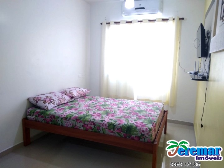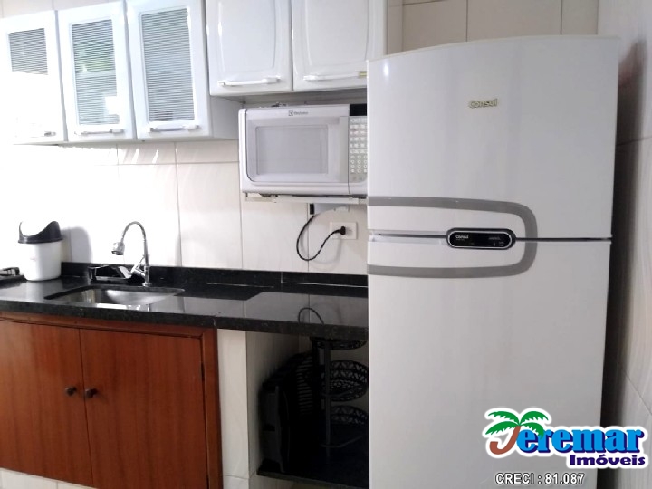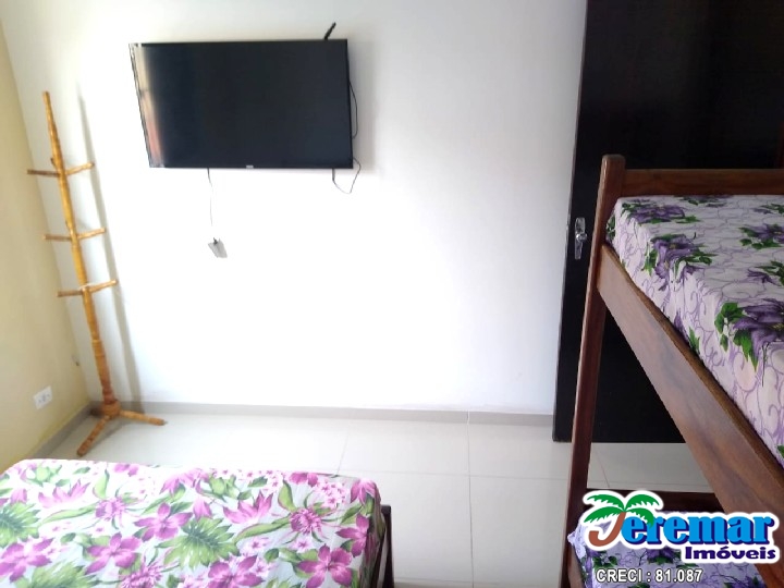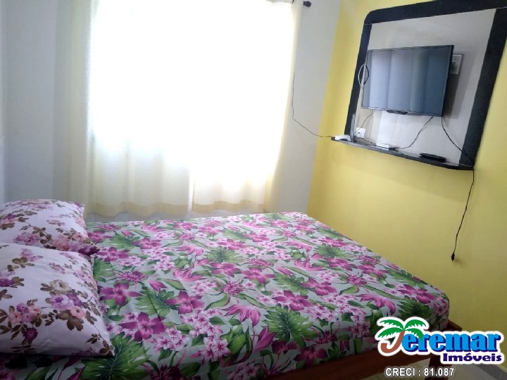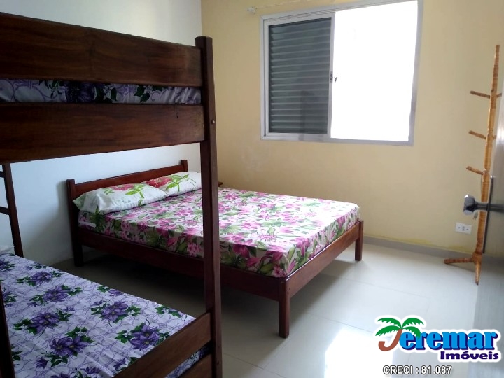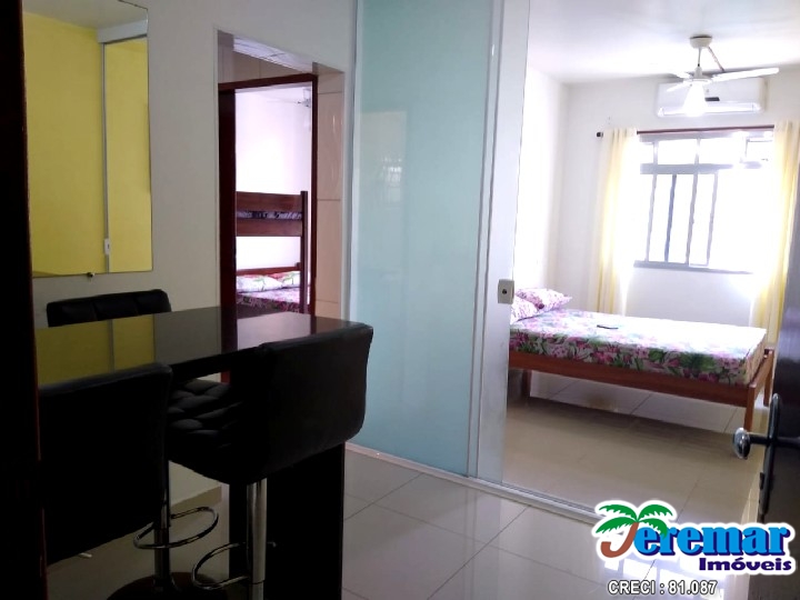 Apartamento a 80 metros da praia com sala cozinha 2 dormitórios, com ar condicionado, 1 banheiro, 1 vaga de garagem, para 6 pessoas