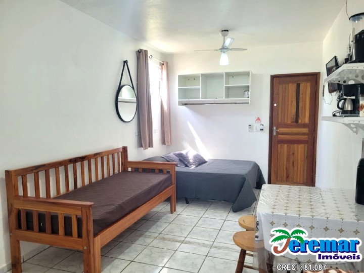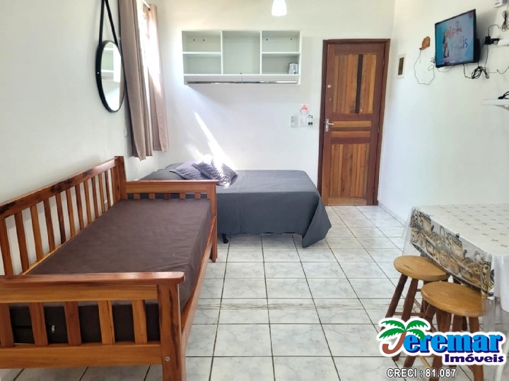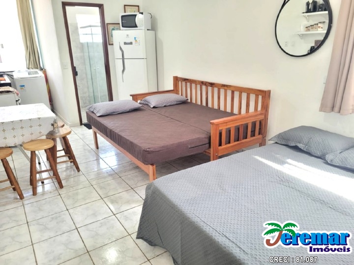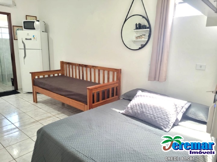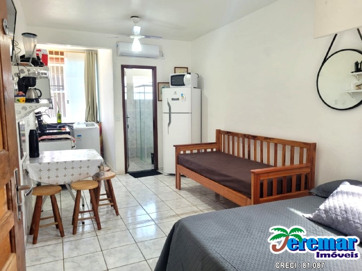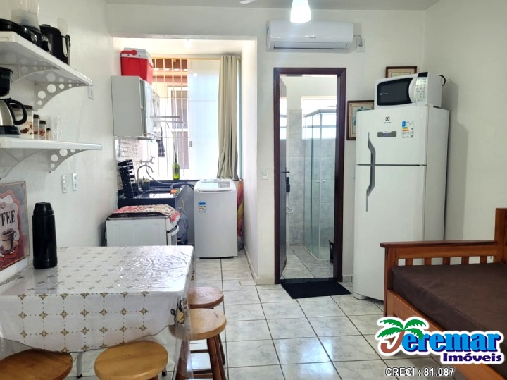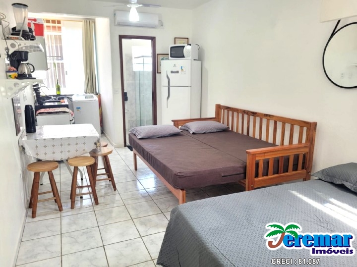 Kitnet a 200 metros da praia grande acomoda ate 04 pessoas , com maquina de lavar roupa , com ar condicionado, 01 banheiro, sendo uma cama de casal um sofá cama e um colchão extra com cozinha com geladeira, fogão, microndas, liquidificar, sanduicheira, cafeteira, e os utensílios domestico o básico, 01 vaga de estacionamento a aberto .