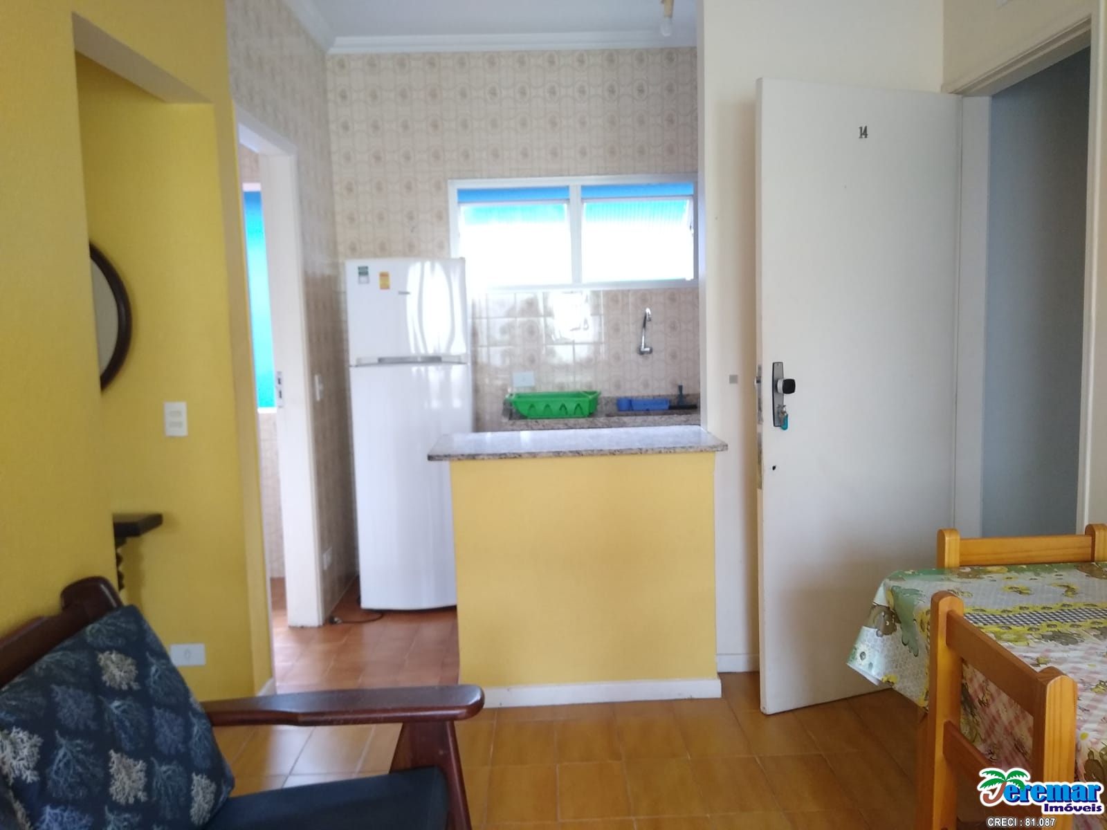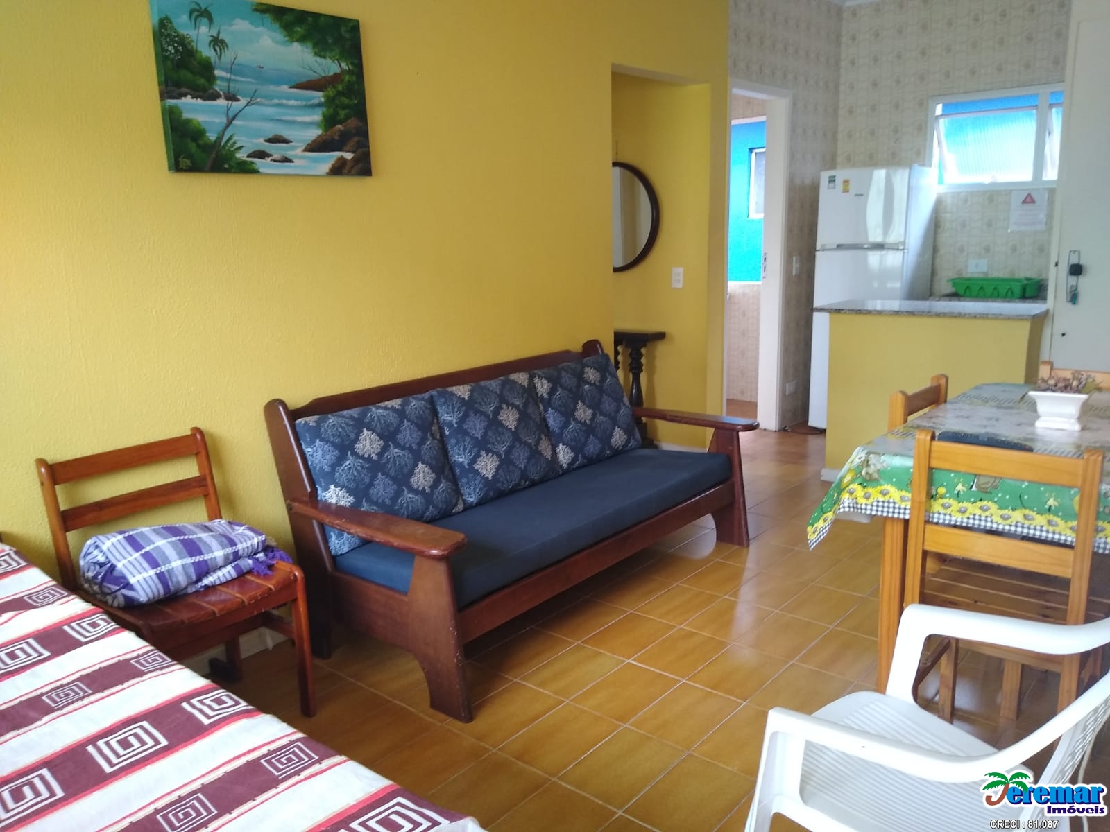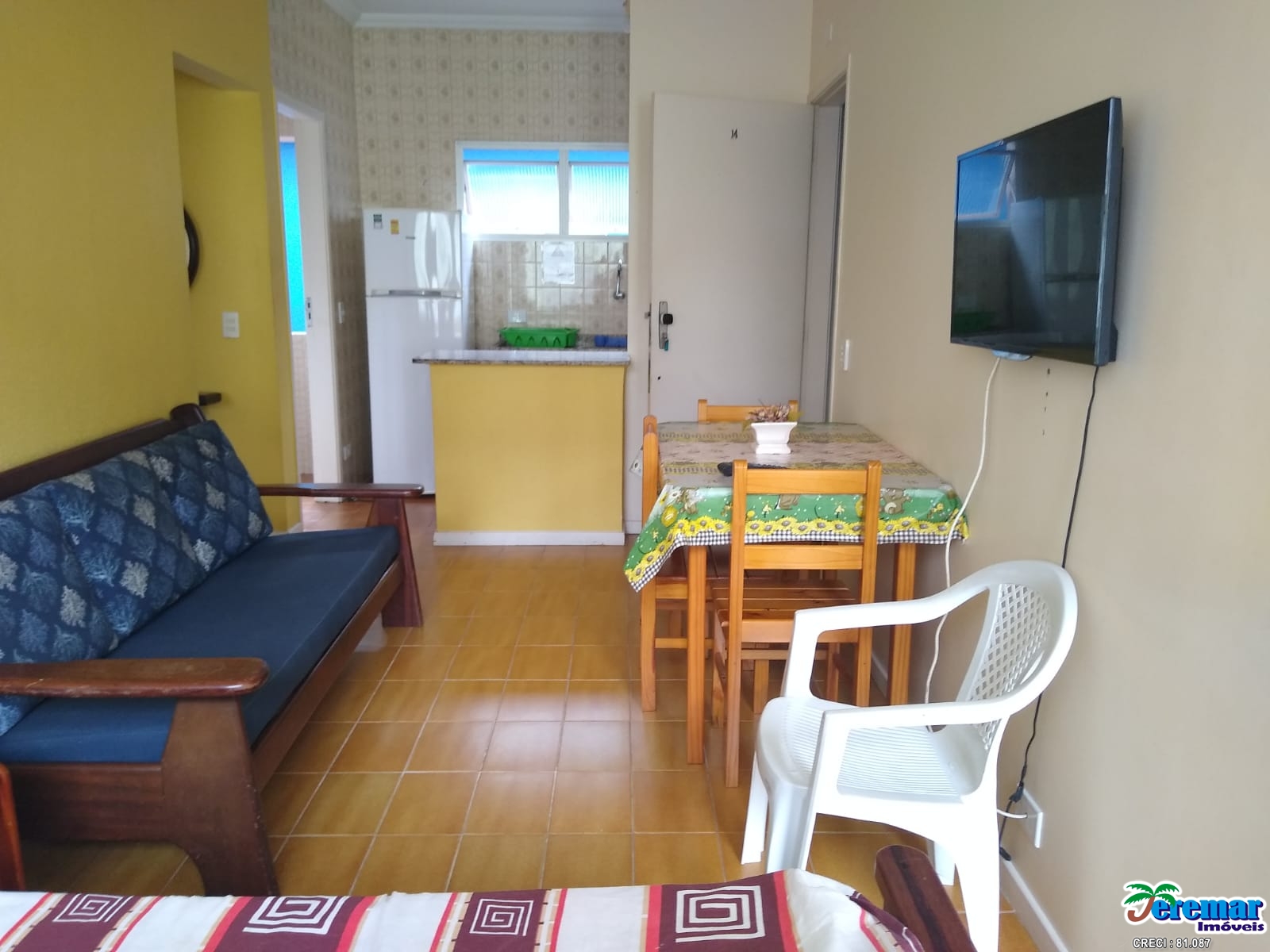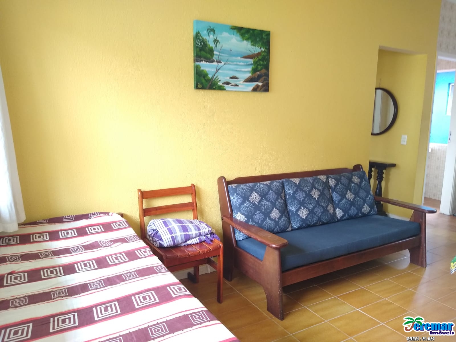 apartamento a 100 metros da praia com  ar condicionado no quarto com  ventilador de teto, cozinha americana,  acomoda 05 pessoas,  01 vaga de garagem.