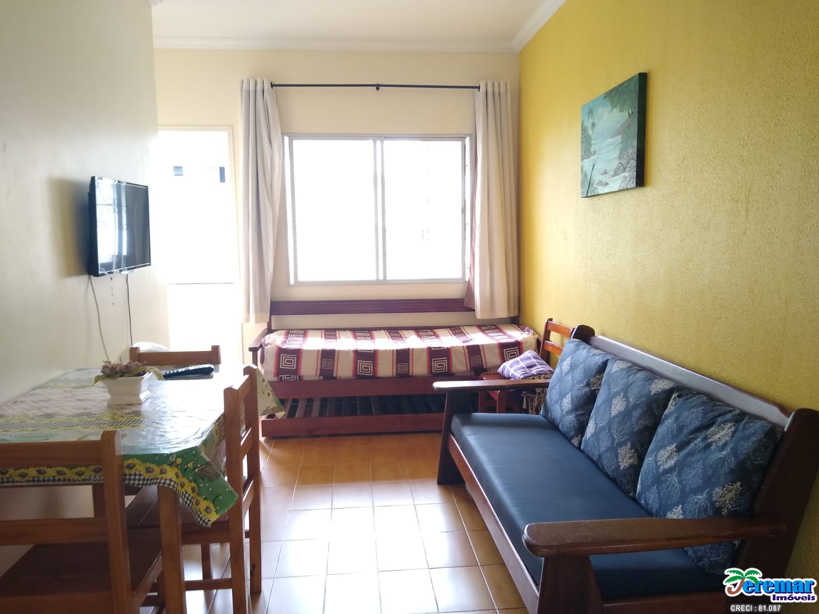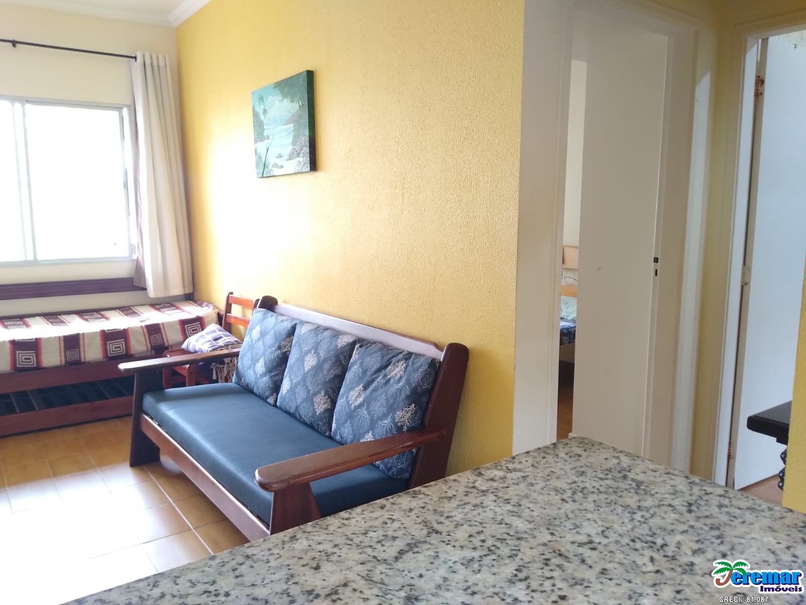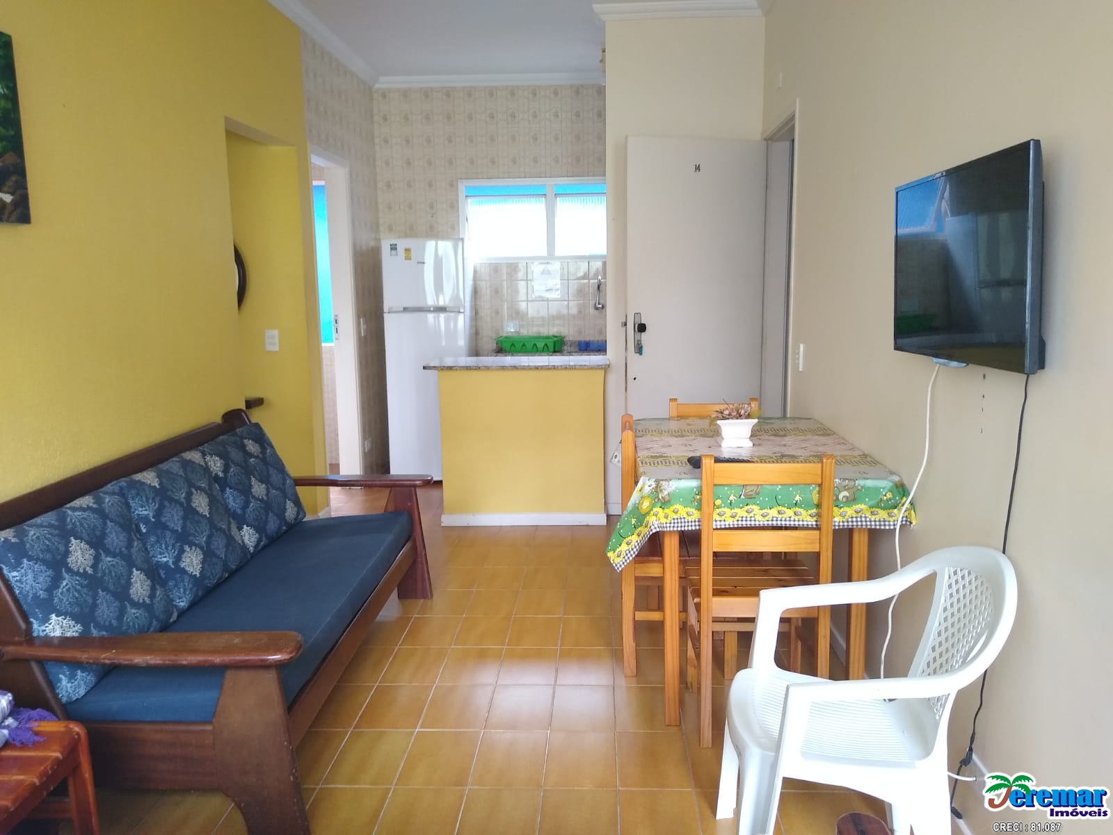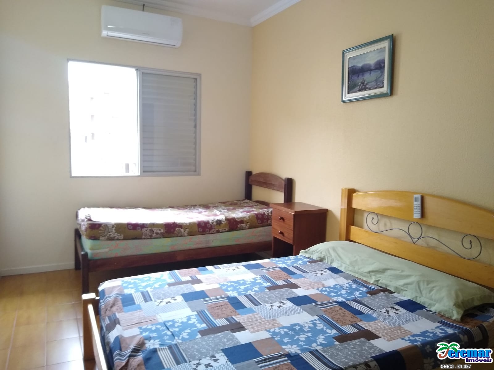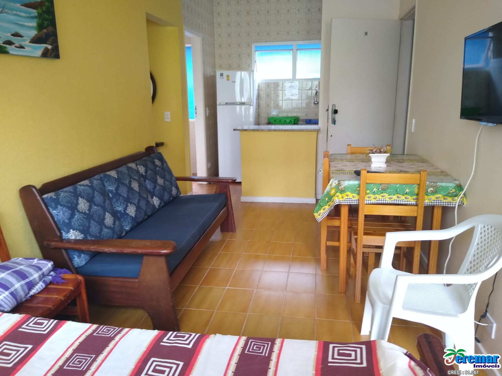 apartamento a 100 metros da praia com  ar condicionado no quarto com  ventilador de teto, cozinha americana,  acomoda 05 pessoas,  01 vaga de garagem.
