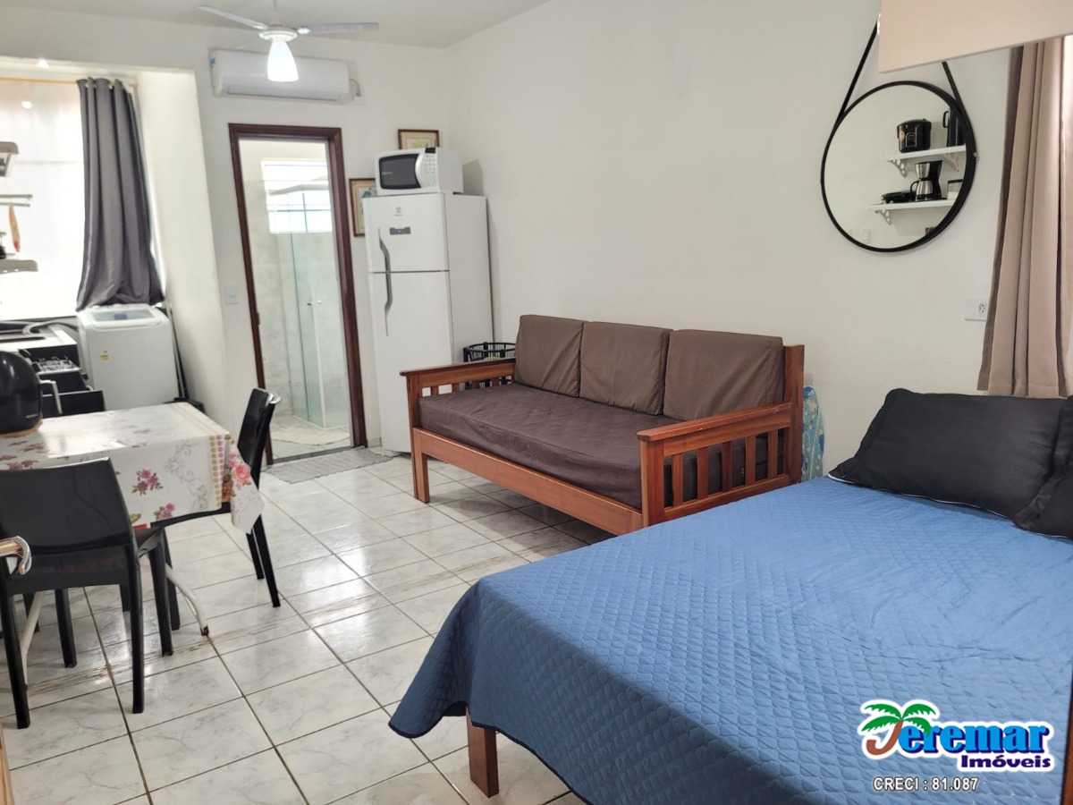 Kitnet a 200 metros da praia grande acomoda ate 04 pessoas , com maquina de lavar roupa , com ar condicionado, 01 banheiro, sendo uma cama de casal um sofá cama e um colchão extra com cozinha com geladeira, fogão, microndas, liquidificar, sanduicheira, cafeteira, e os utensílios domestico o básico, 01 vaga de estacionamento a aberto .